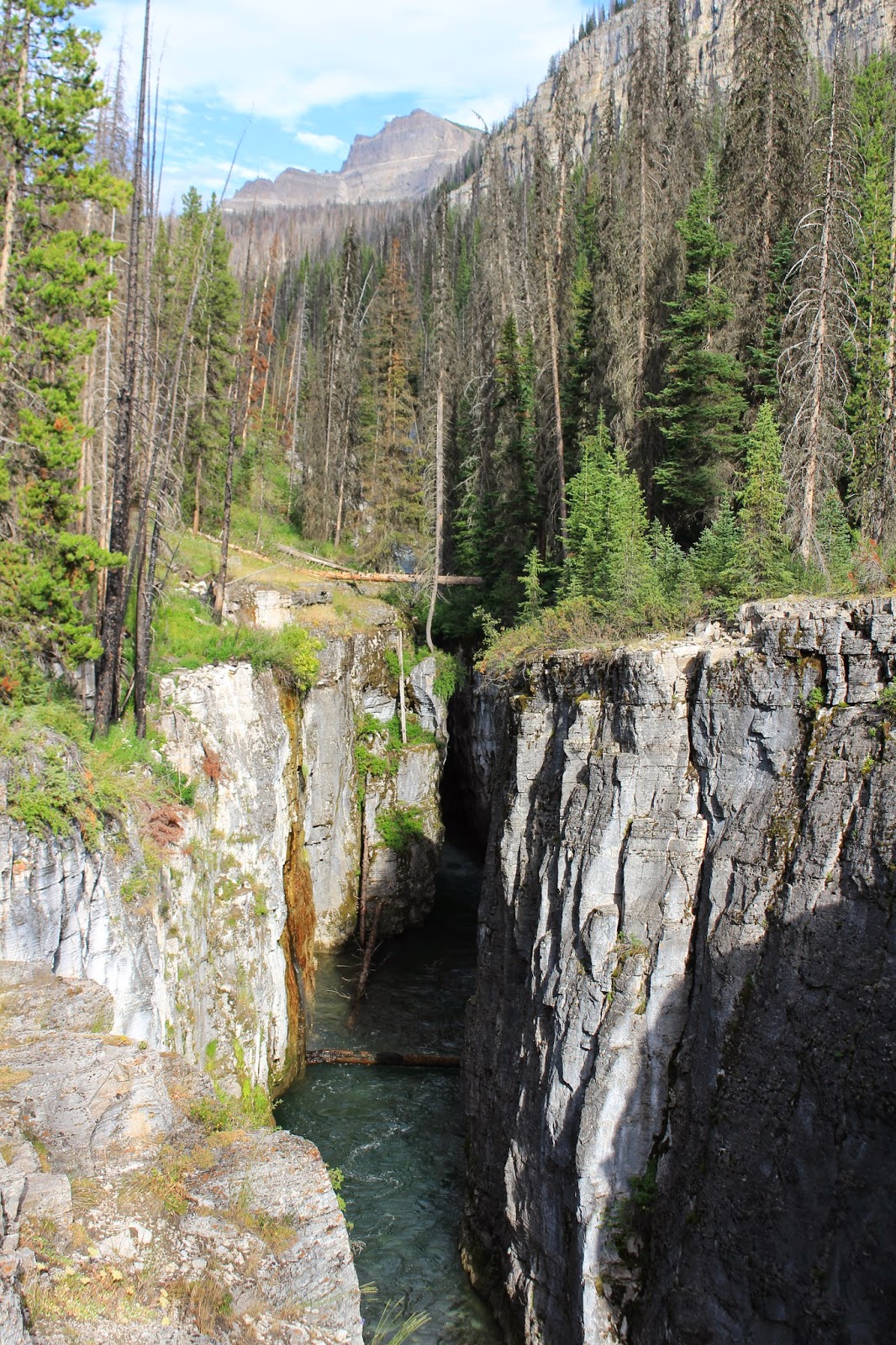 We had heard that South Fork Falls is a fantastic side trip, just under a mile and a half round trip. We were not disappointed. Upstream from our crossing the South Fork drops down a steep waterfall, then winds its way through a narrow, deep chasm or carved over time by the torrents of water raging down the river. In places the slot canyon is so narrow hikers have actually jumped across, although missing the bank on the other side of the steep cliff would mean falling over a hundred feet to certain death. Predictably, Sierra wanted to jump to the other side to explore a tiny crack on the other side that appeared to lead down to the floor of the canyon.